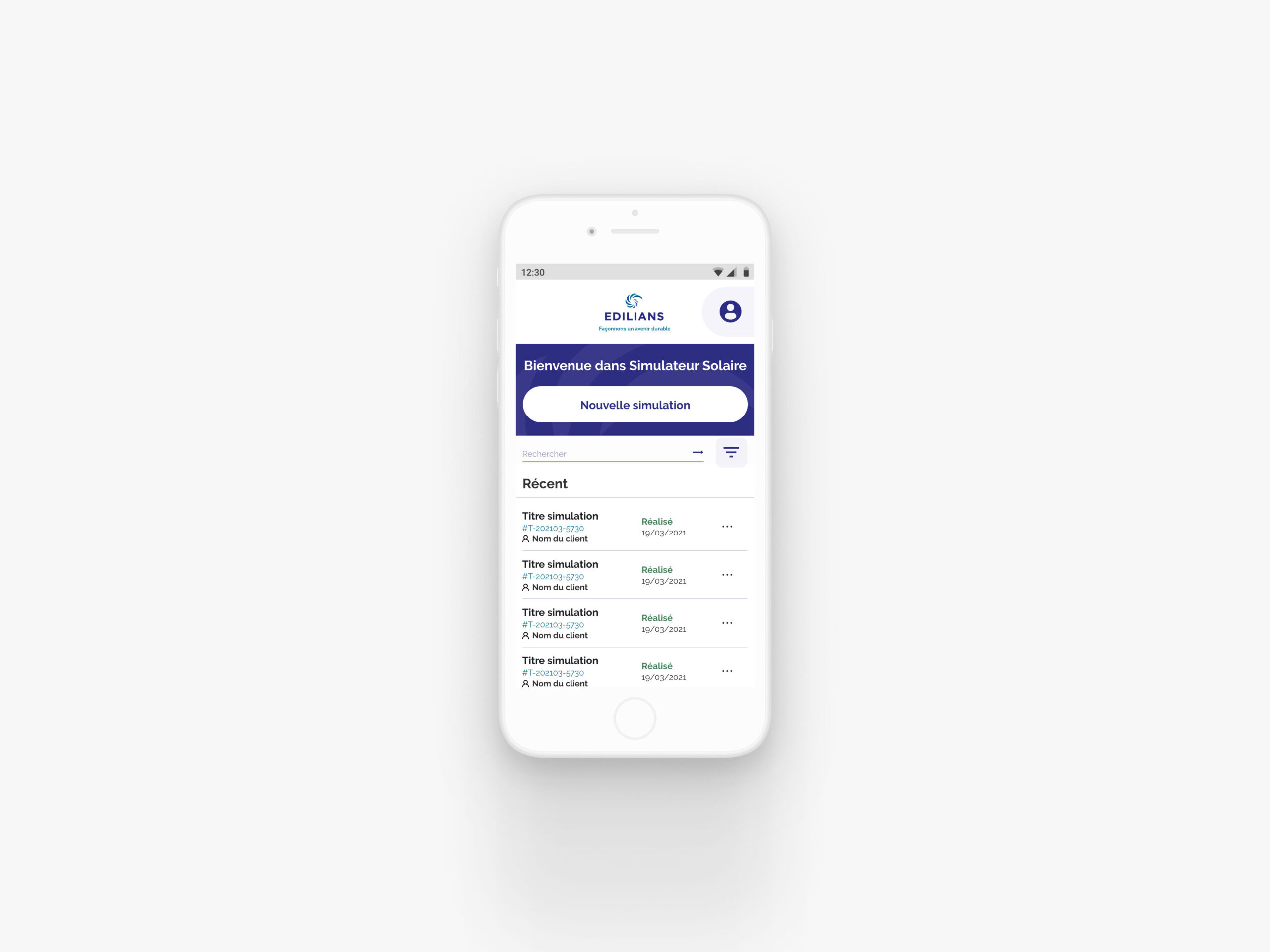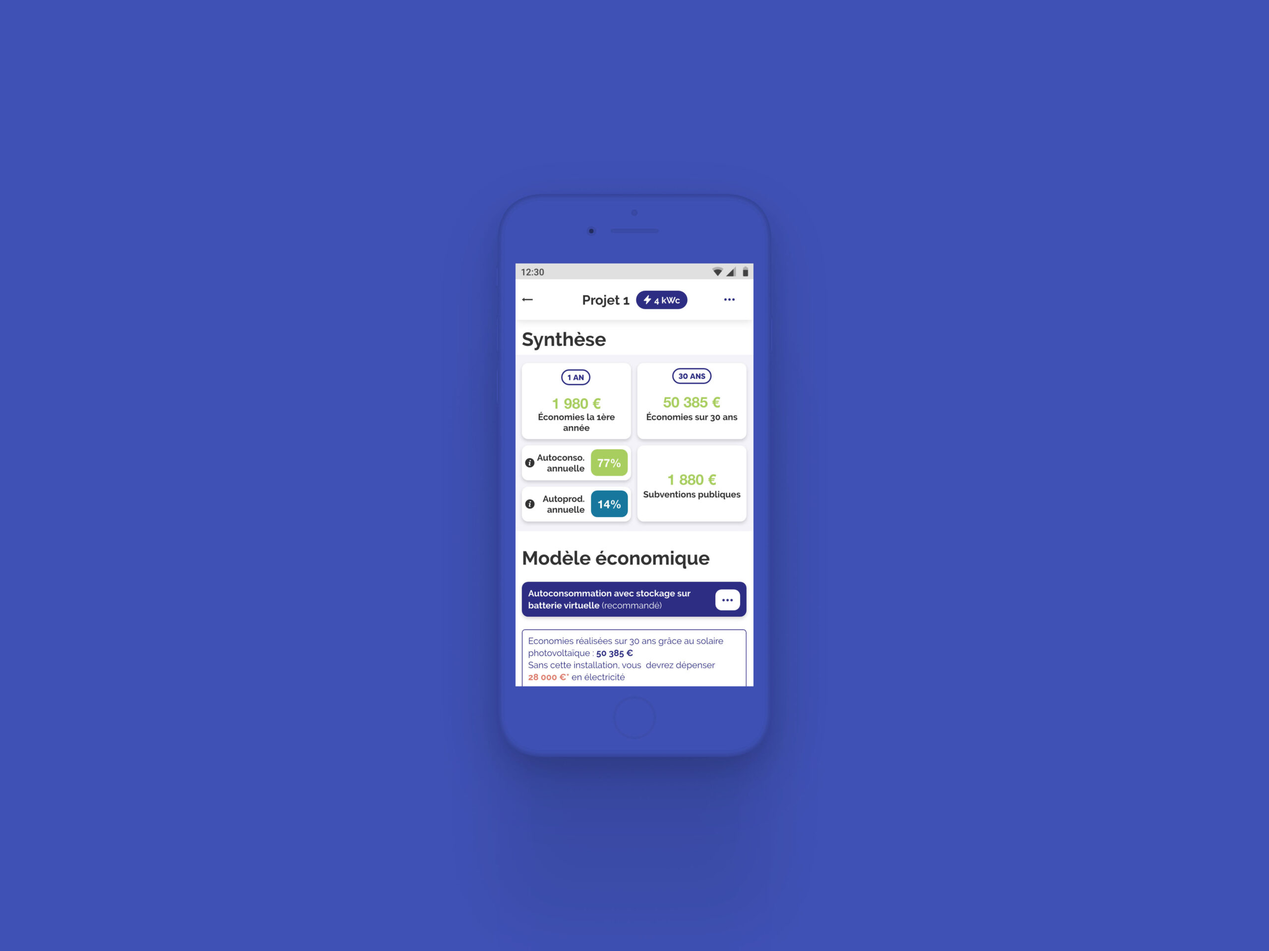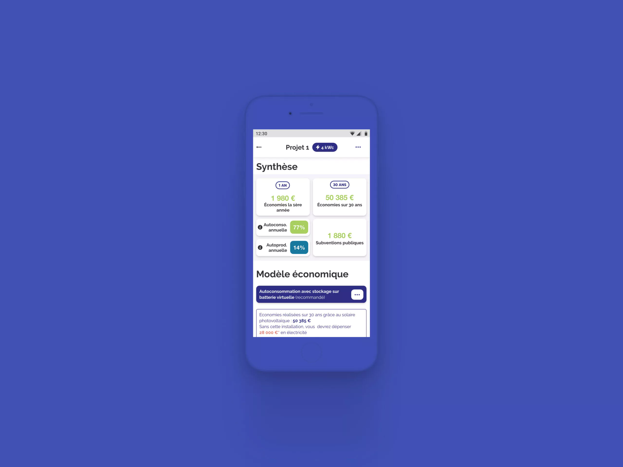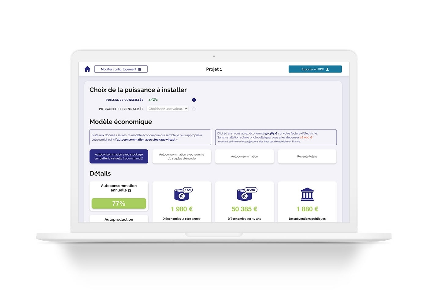 Une application permettant aux particuliers de réaliser des simulations d'installations solaires.