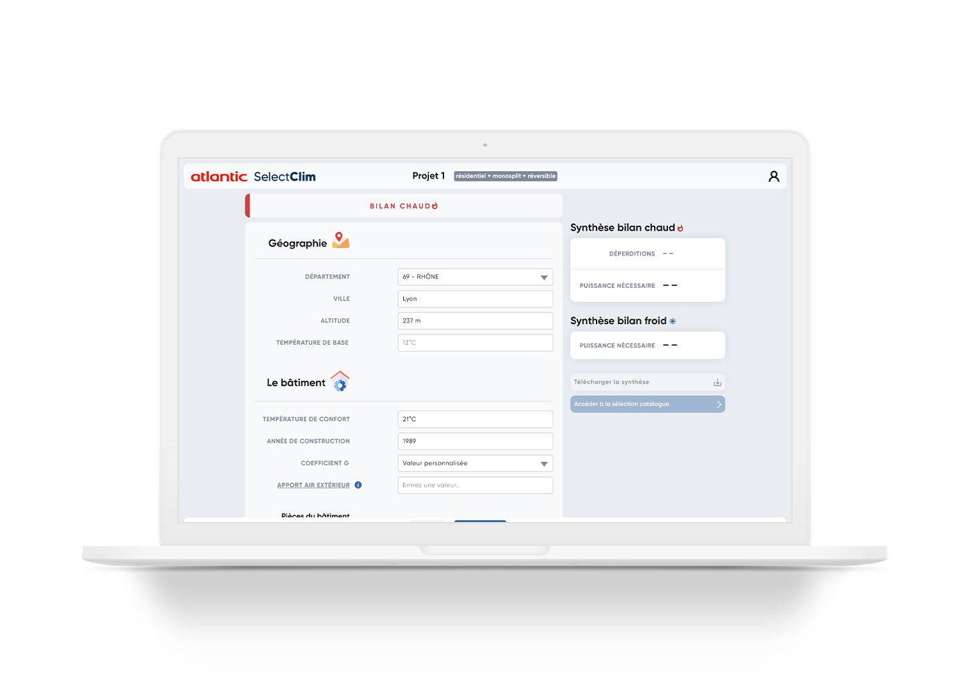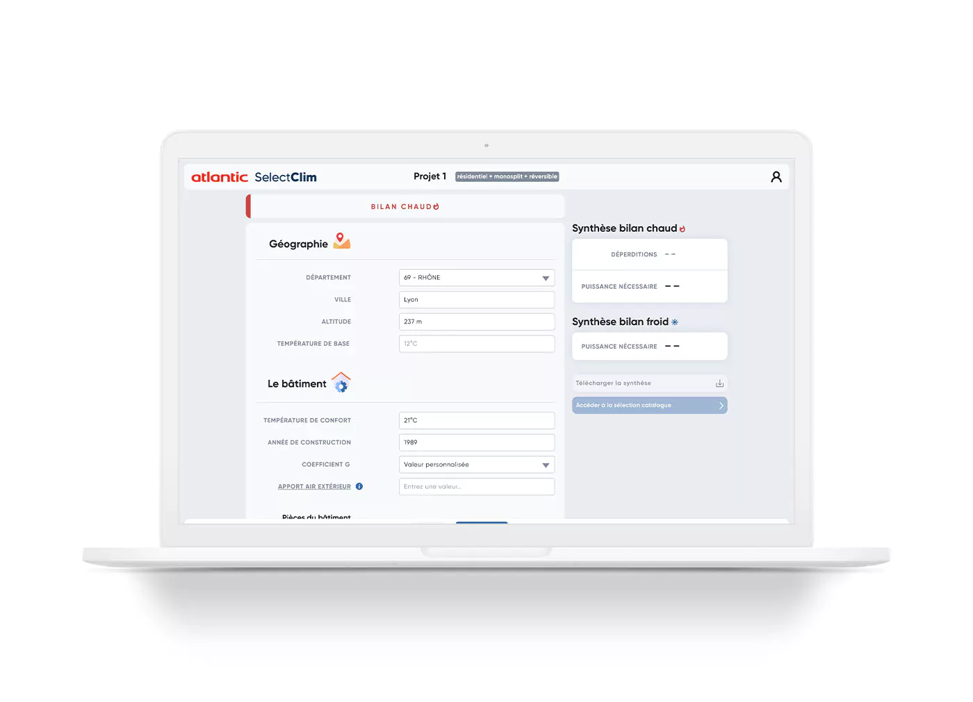 Design d'une application permetant de réaliser des bilans thermiques.